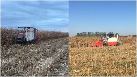 ▲2018年,利馬格蘭購買第二臺4YZCC玉米小區(qū)測產(chǎn)收割機(jī),與2017年購買的收割機(jī)共同投入使用,兩臺收割機(jī)共在接近20個測試點進(jìn)行收獲測產(chǎn),合計收獲測產(chǎn)四萬五千個小區(qū),約450畝地,是4YZCC玉米小區(qū)測產(chǎn)收割機(jī)取得的又一次巨大成功。